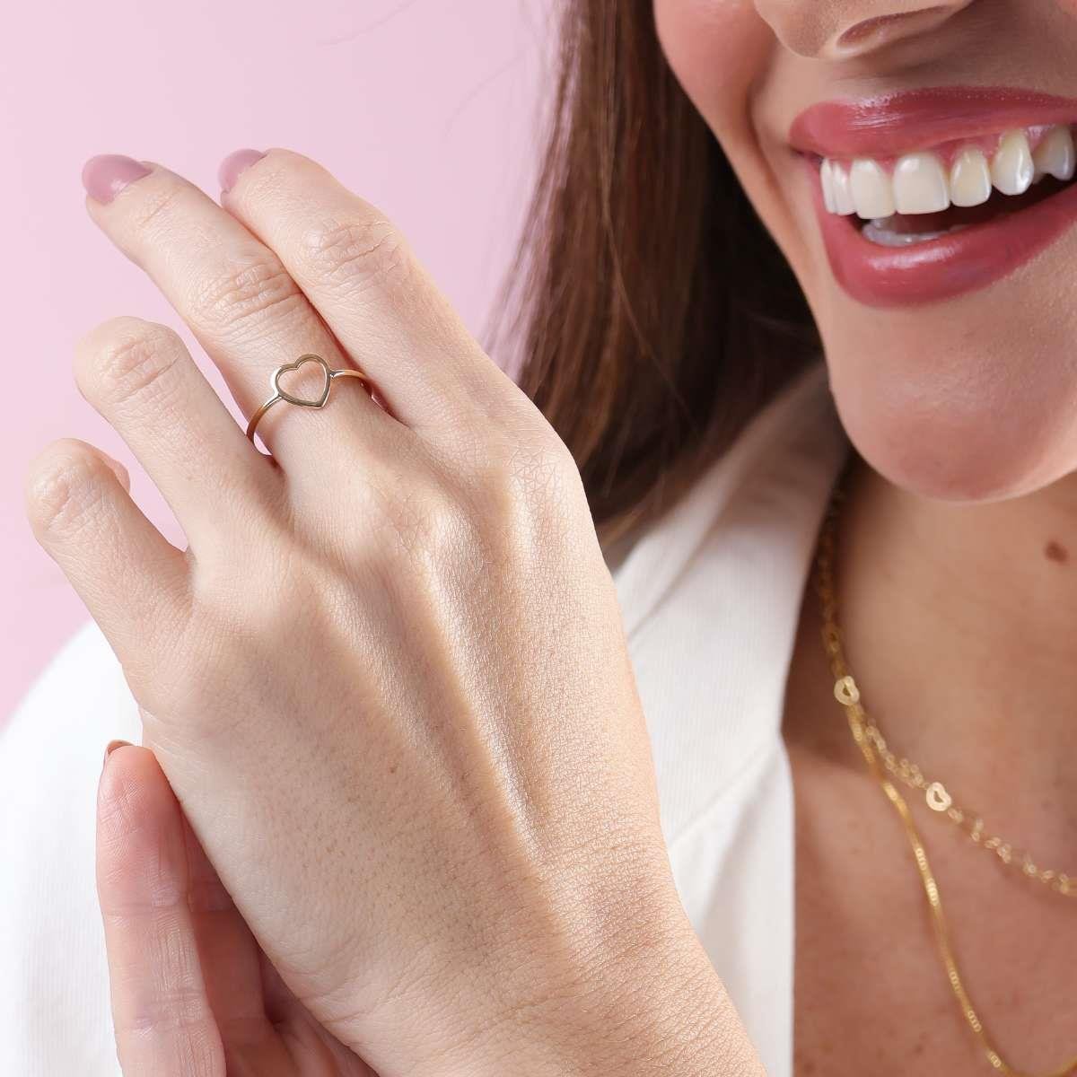 Anel de Coração Vazado.Banho: Banhado à ouro