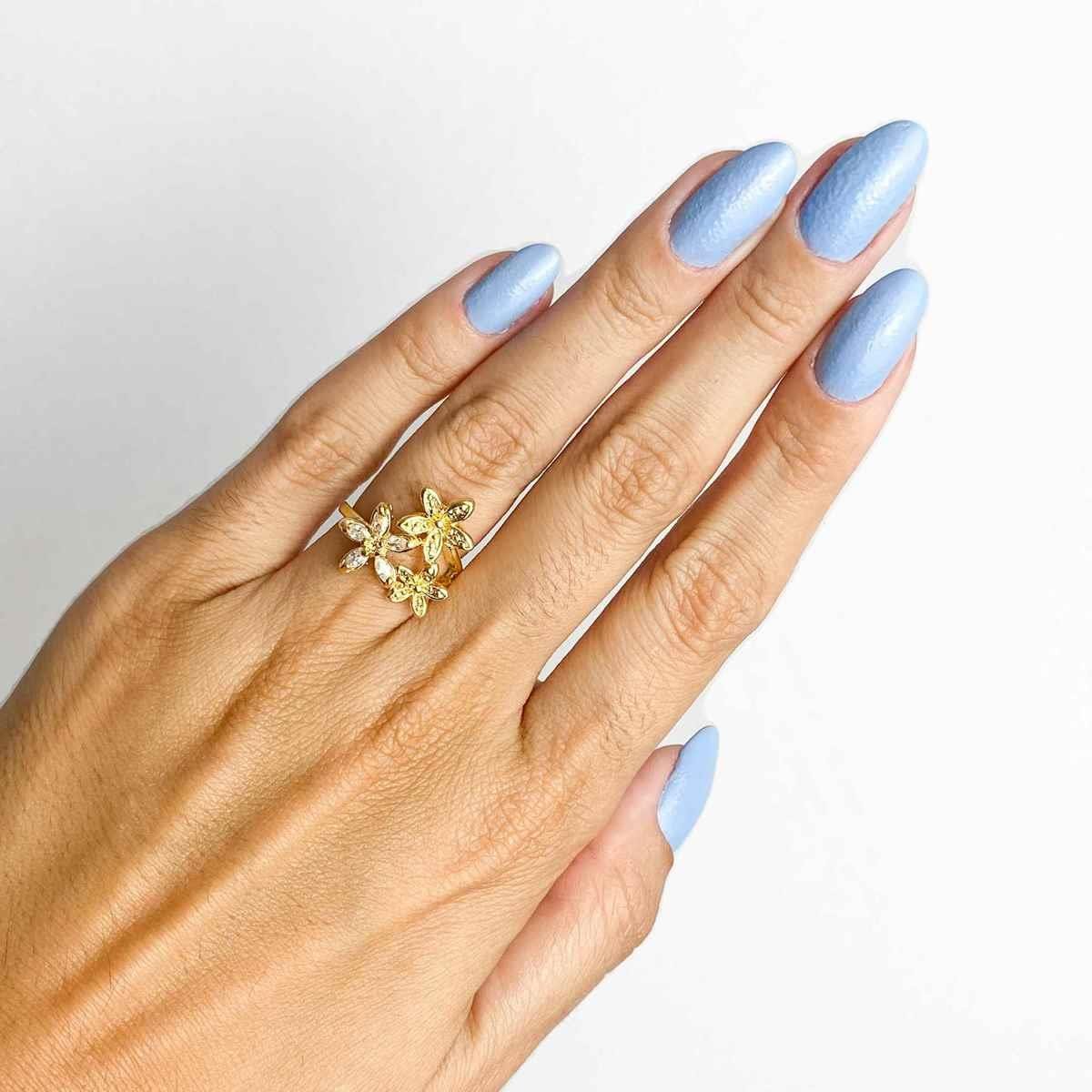 Anel de Flor com Zircônia Navete Folheado a Ouro Material: Latão Banho: Folheado a Ouro Medidas Aproximadas: - Espessura: 2mm - Peso: 3,3g Garantia: 12 meses para folheados em ouro e 3 meses para defeitos de fabricação REF.: KSO-6085: