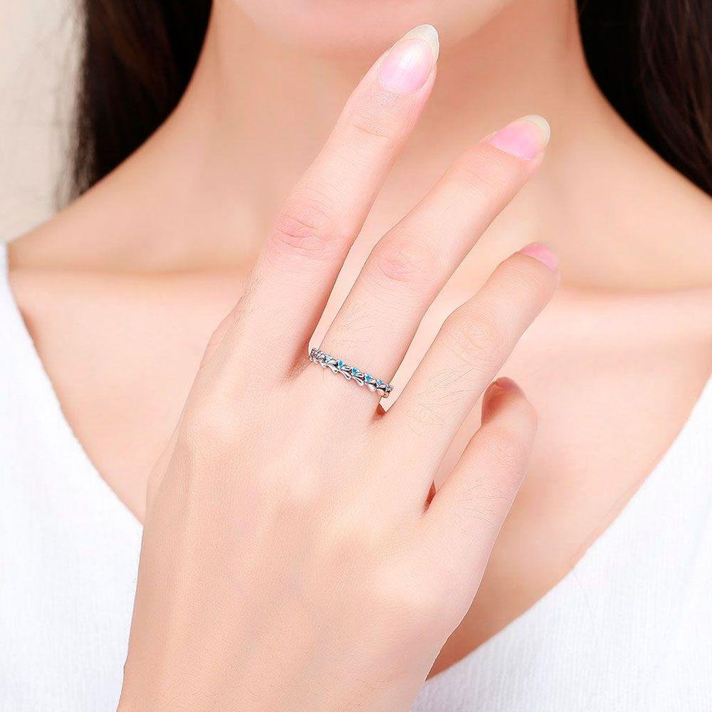 Anel em prata 925 modelo onda do mar com zircônia azul. Material: Prata 925 Tipo de Pedra: Zircônia Garantia: Eterna no Metal (Prata 925) e 3 meses para Defeitos de Fabricação. REF: ANP-162