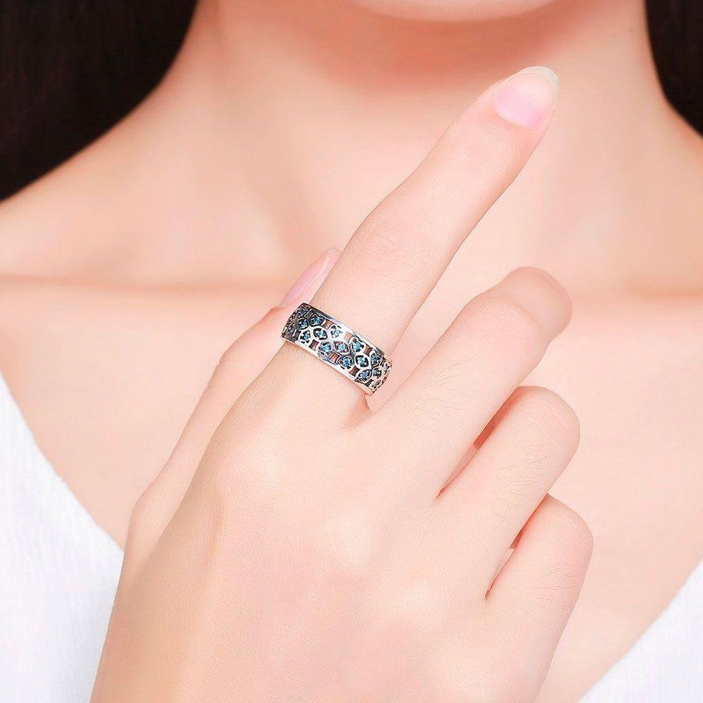 Anel em prata 925 modelo Pétalas Com Zircônia Azul. Material: Prata 925 Tipo de Pedra: Zircônia Garantia: Eterna no Metal (Prata 925) e 3 meses para Defeitos de Fabricação. REF: ANP-064