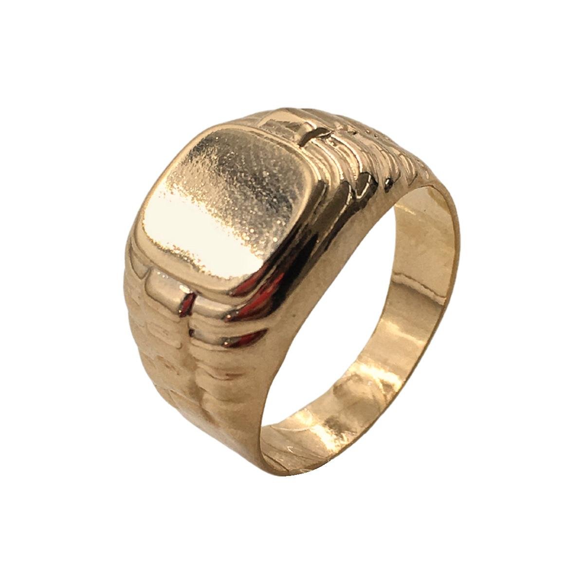 Anel Masculino Com Quadrado Liso e Detalhes nas Laterais Folheado a Ouro Material: Latão Banho: Folheado a Ouro Medidas Aproximadas: - Espessura: 13mm - Peso: 2,9g REF.: KO-1149: