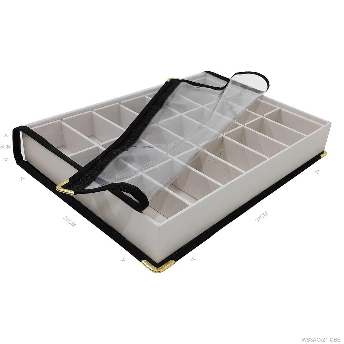 Bandeja grande alta com 21 quadriculados, confeccionada em material MDF (não em papelão) de primeira linha, contém 10 quadriculados com acabamento todo revestido em tecido aveludado ou corino em diversas cores, ideal para exposição e organização de suas jóias e semi jóias, evitando danos e riscos as suas peças, protegendo seu banho e destacando a beleza de suas jóias sem perder a elegância!