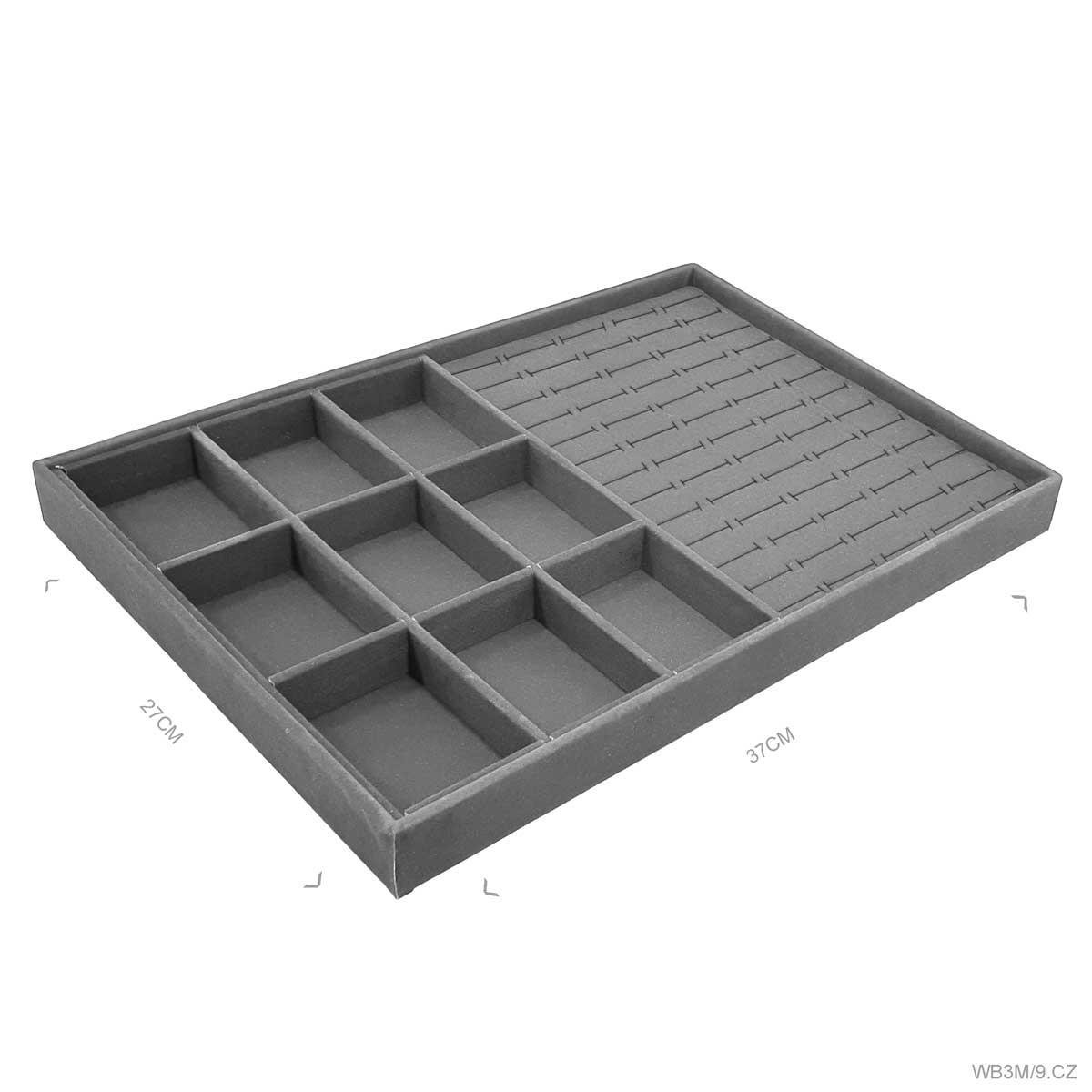 Bandeja mista grande confeccionada em material MDF (não em papelão) de primeira linha, com acabamento todo revestido em tecido aveludado ou corino em diversas cores, ideal para exposição e organização de suas jóias e semi jóias, evitando danos e riscos as suas peças, protegendo seu banho e destacando a beleza de suas jóias sem perder a elegância!