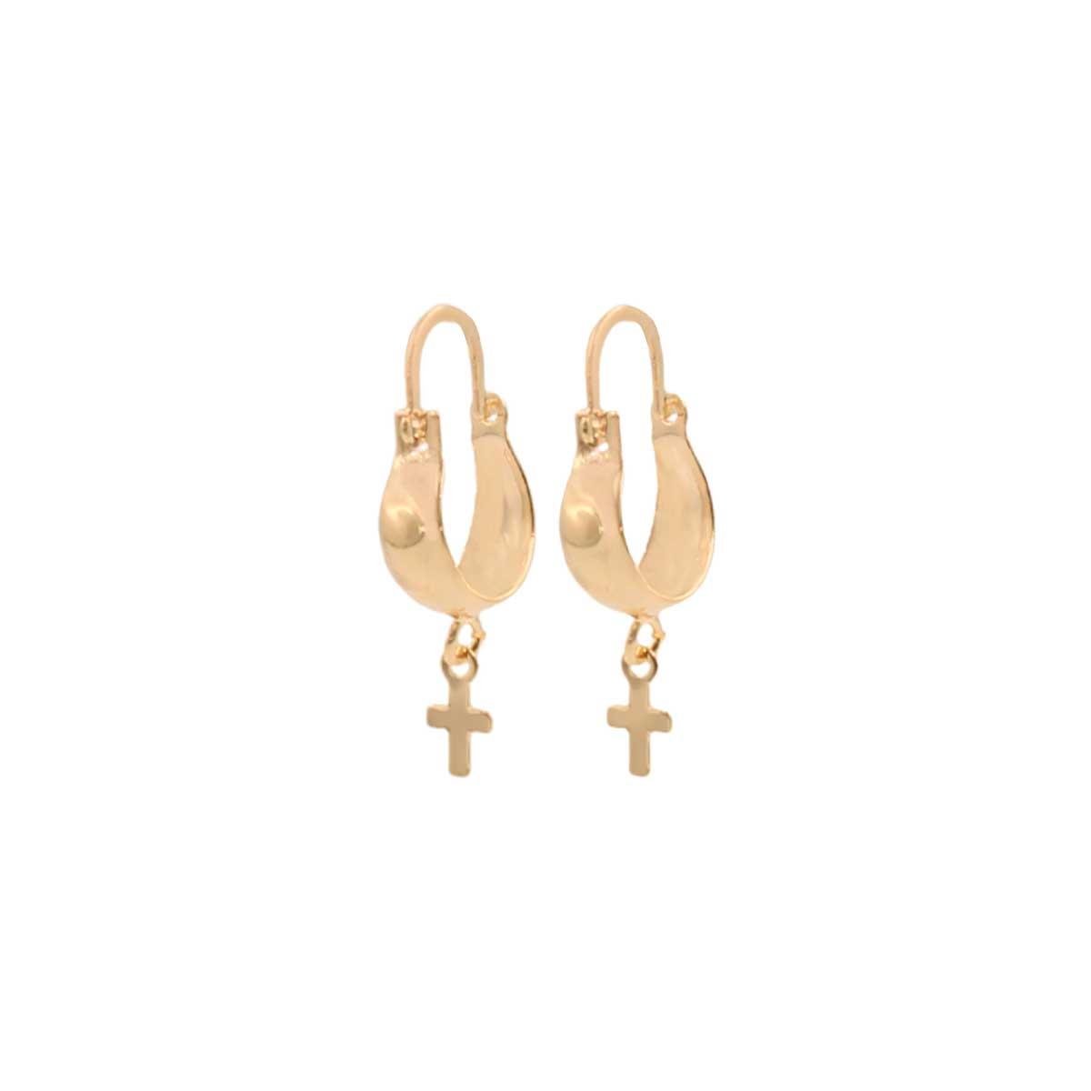 Brinco argolinha com Cruz Banho: Folheado à ouro Tamanho: Médio Material: Latão Medidas aproximadas Altura: 2,8cm Largura: 4,0mm Peso: 1,6g REF.: BRBO-0729: