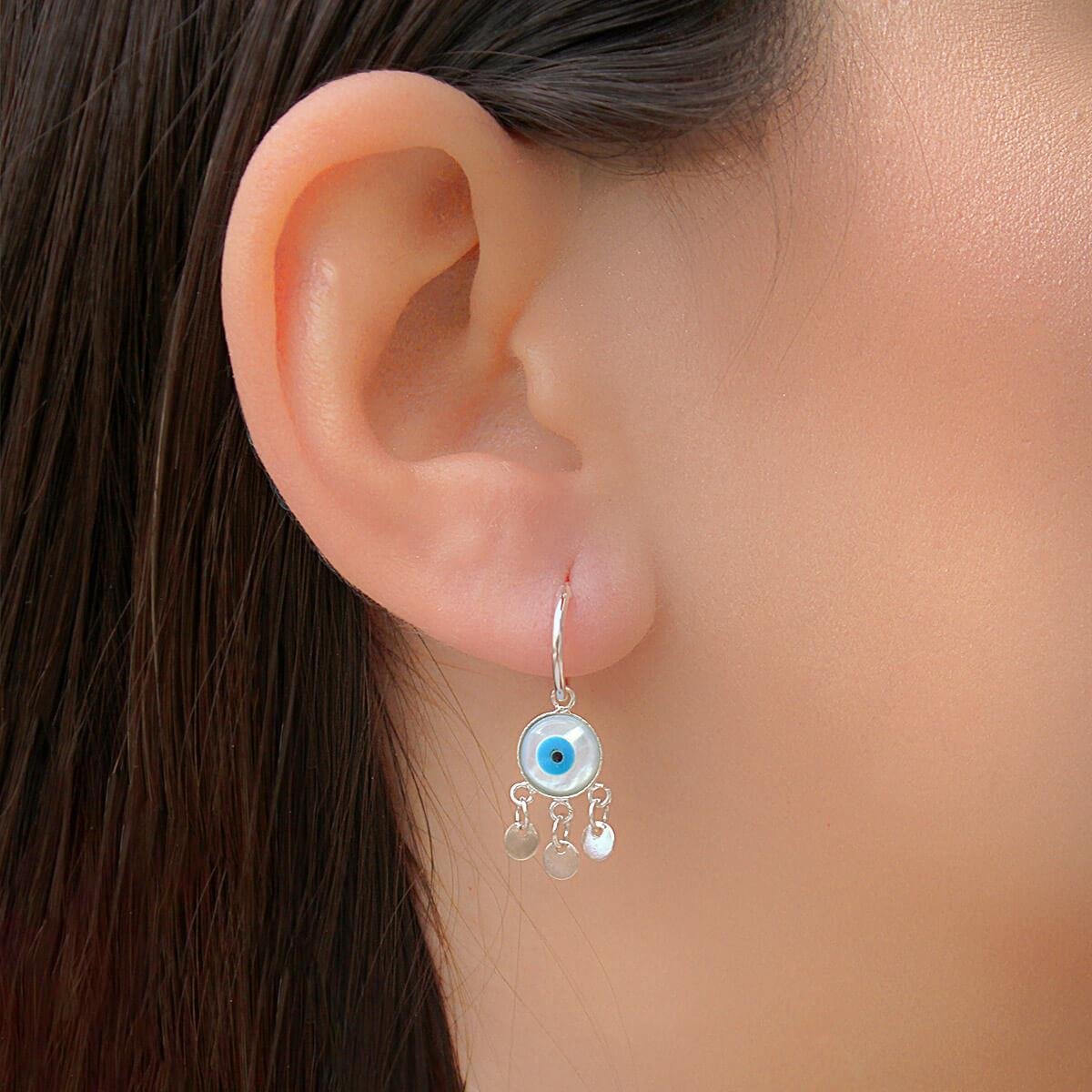 O brinco de prata argolinha com olho grego e plaquinhas, uma peça sofisticada e elegante que certamente irá encantar nossos clientes.