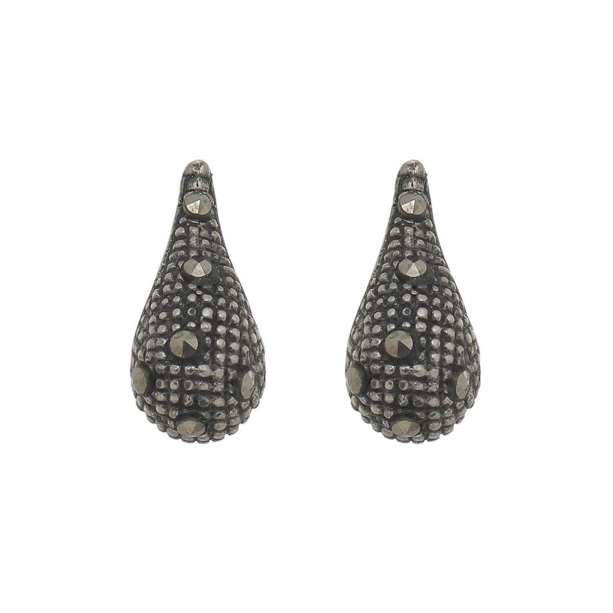 Brinco Gota com Marcassita de Prata Envelhecida