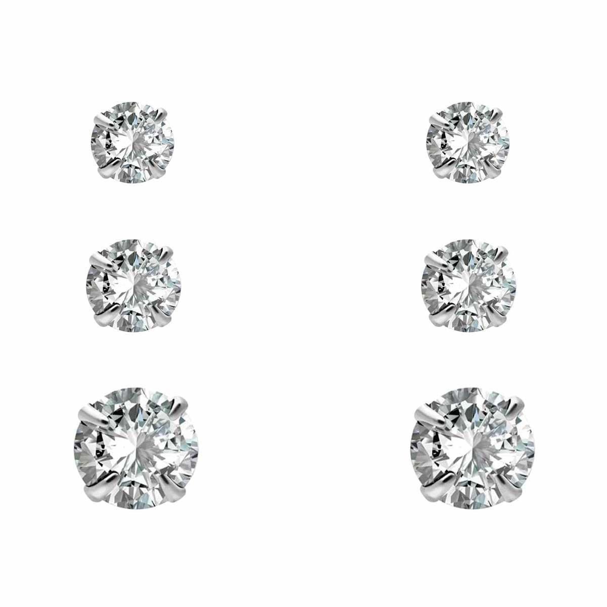 Brinco De Prata 925 Trio Ponto de Luz Redondo
