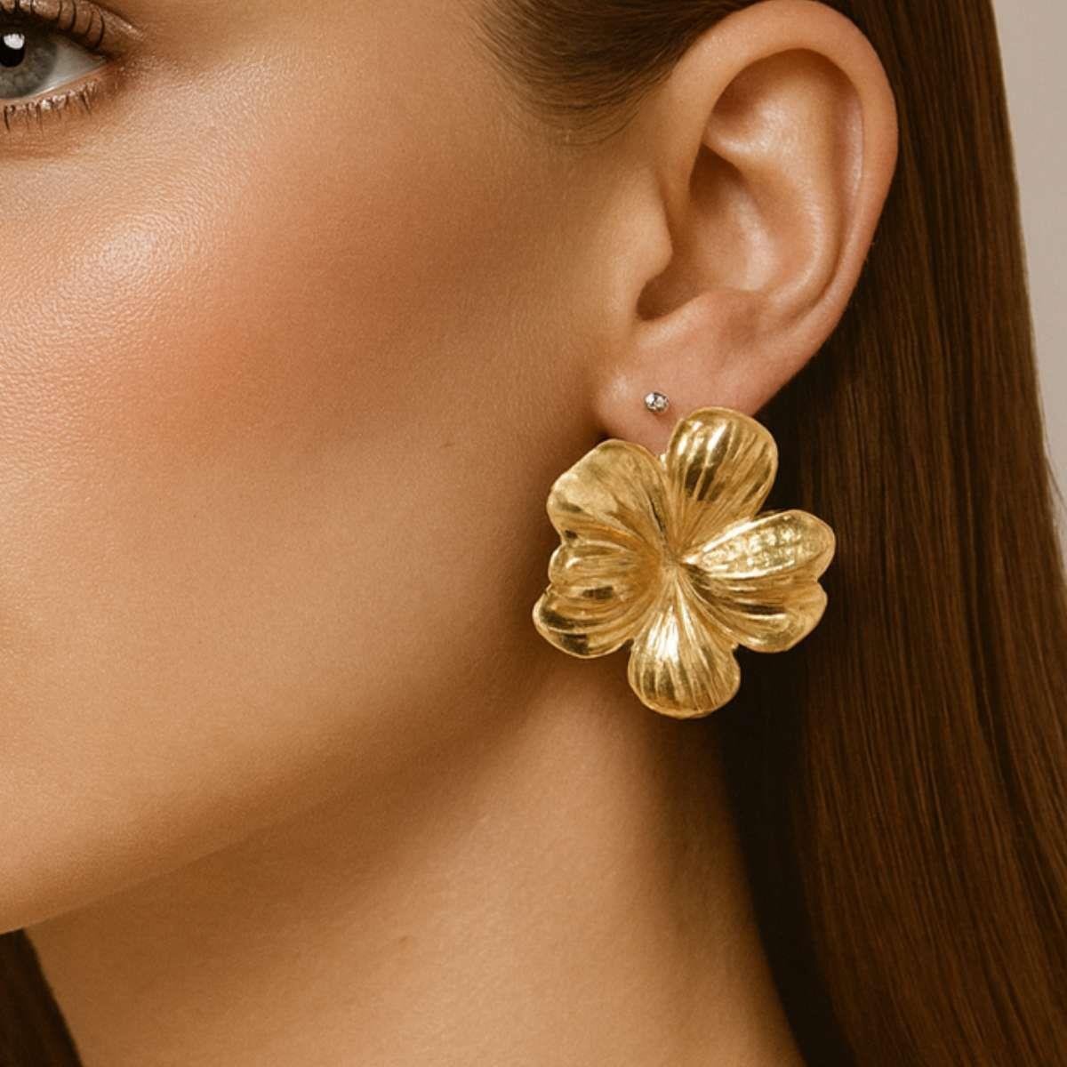 Brinco Flor Orgânico Banhado a OuroMaterial: Latão