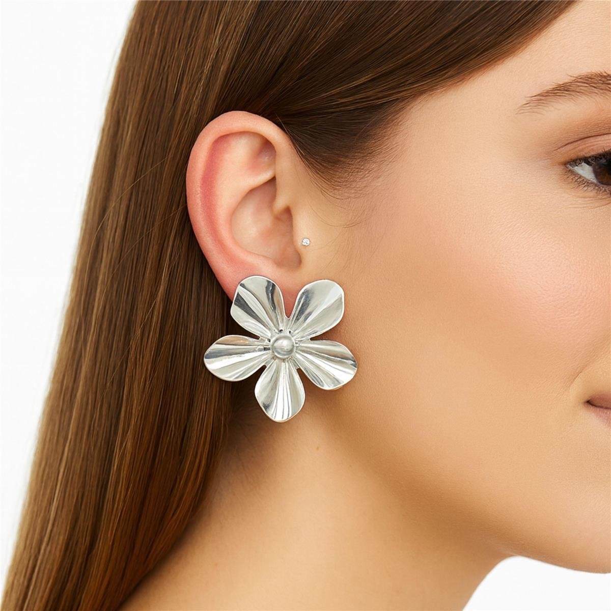 Brinco Flor Orgânico Banhado a PrataMaterial: Latão