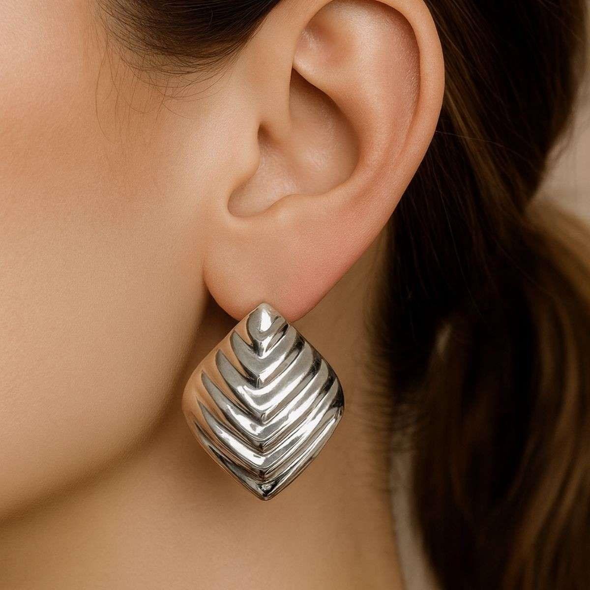 Brinco Folha Orgânico Banhado a PrataMaterial: Latão