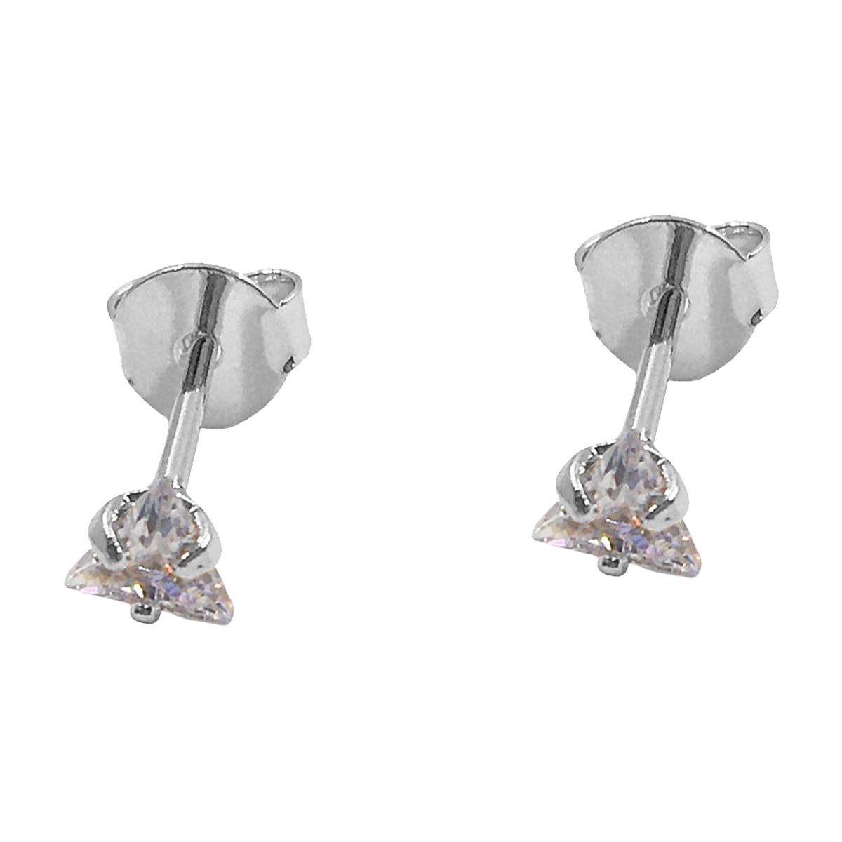 Brinco mini triângulo de zircônia banhado em Prata. Medidas aproximadas: - comprimento: 1,4cm - largura: 4mm - altura: 4mm Peso aproximado: 0,8g REF.: BZP-297: