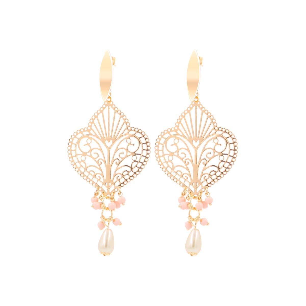 Brinco trabalhado com pérola e miçanga Banho: Folheado à ouro Tamanho: Médio Material: Latão Tipo de Pedra: Pérola, Miçanga Medidas aproximadas Altura: 9,8cm Largura base: 7,0mm Largura: 4,1cm Peso: 10,0g. REF.: BRBO-24593: