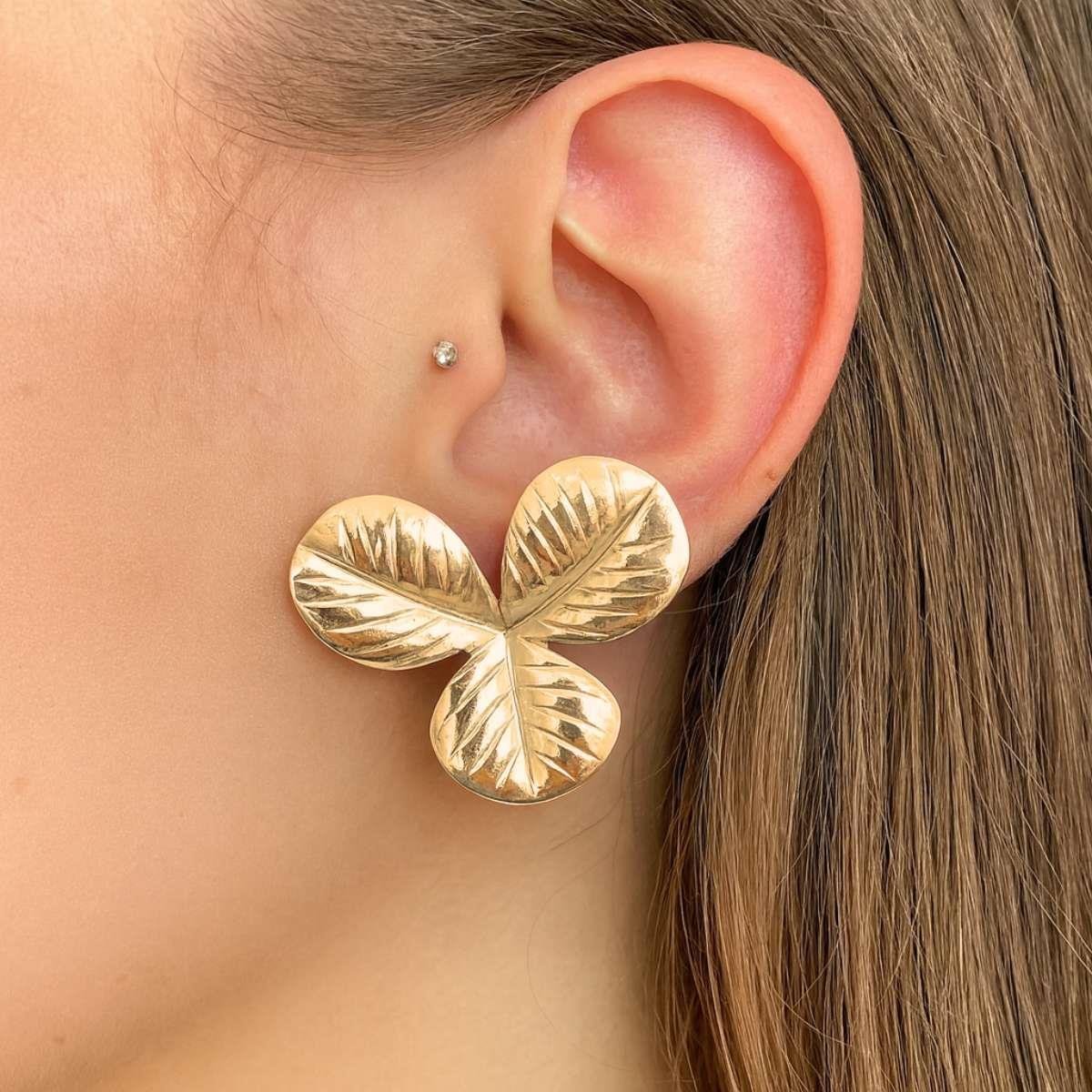 Brinco Três Folhas Orgânico Banhado a OuroMaterial: Latão