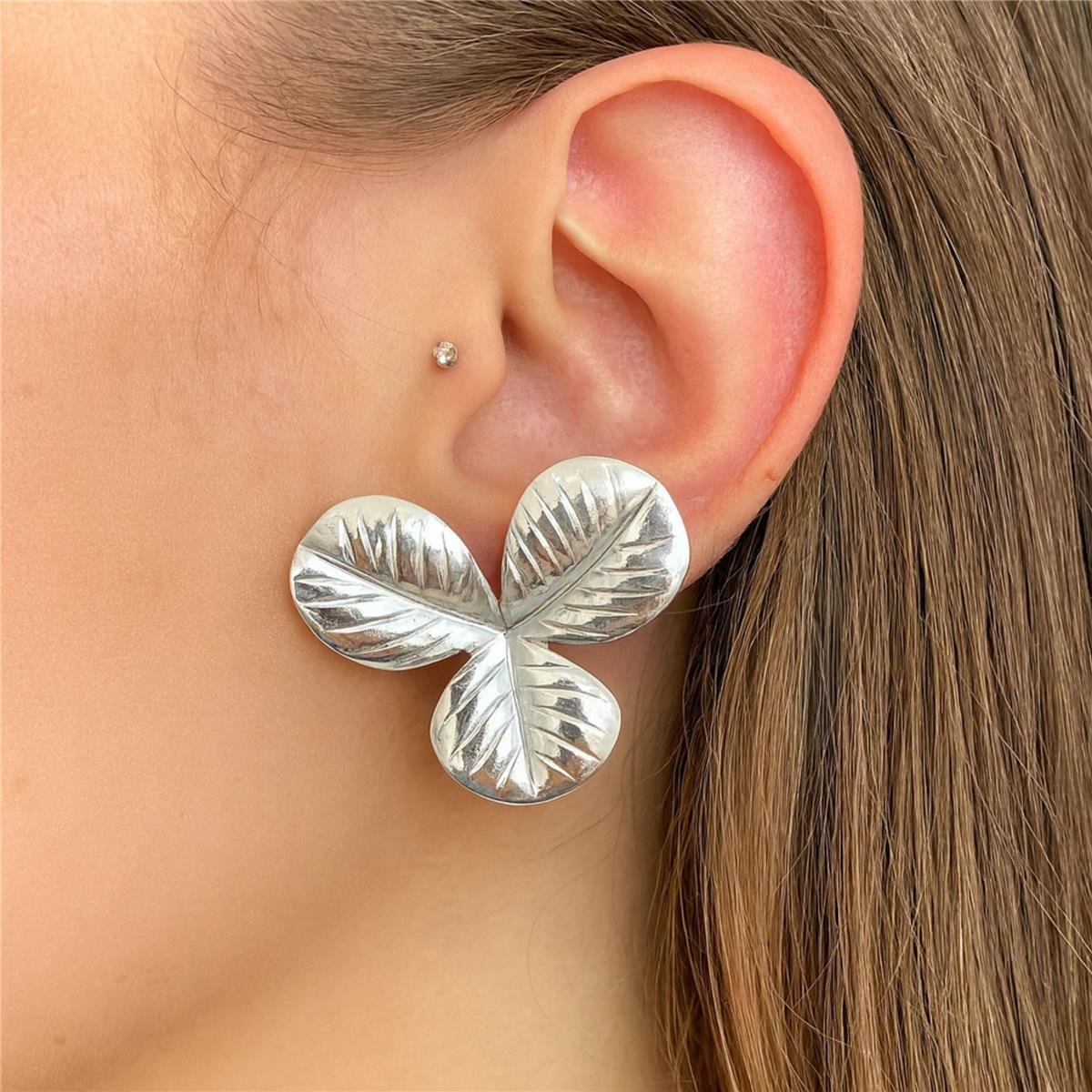 Brinco Três Folhas Orgânico Banhado a PrataMaterial: Latão