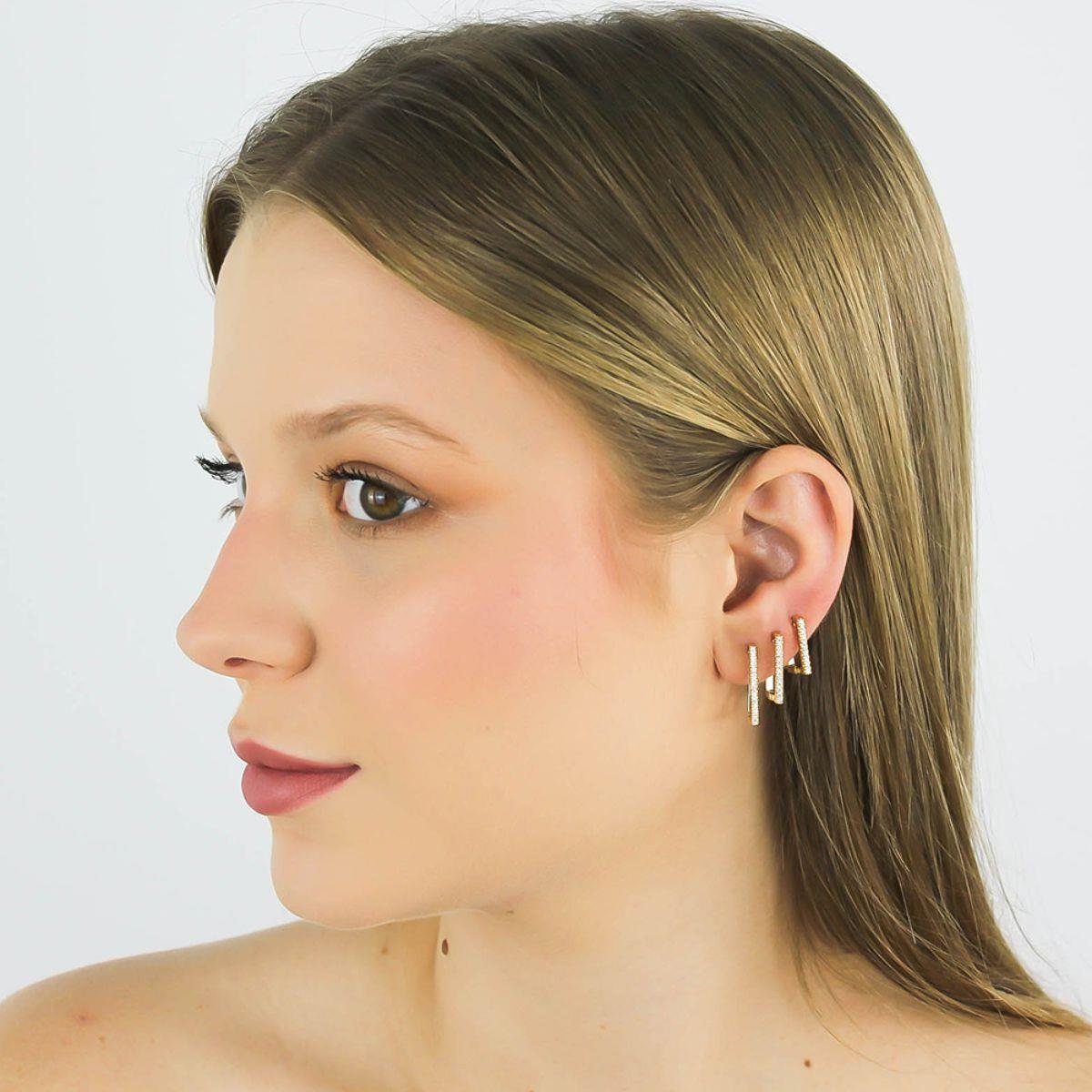 Brinco Trio Quadrado Cravejado Banhado a OuroBanho: Ouro 18K