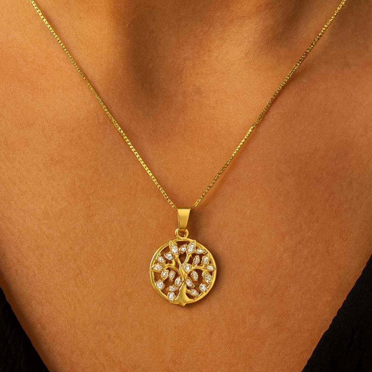 Colar Árvore da Vida 45cm Banhado a OuroMaterial: Latão