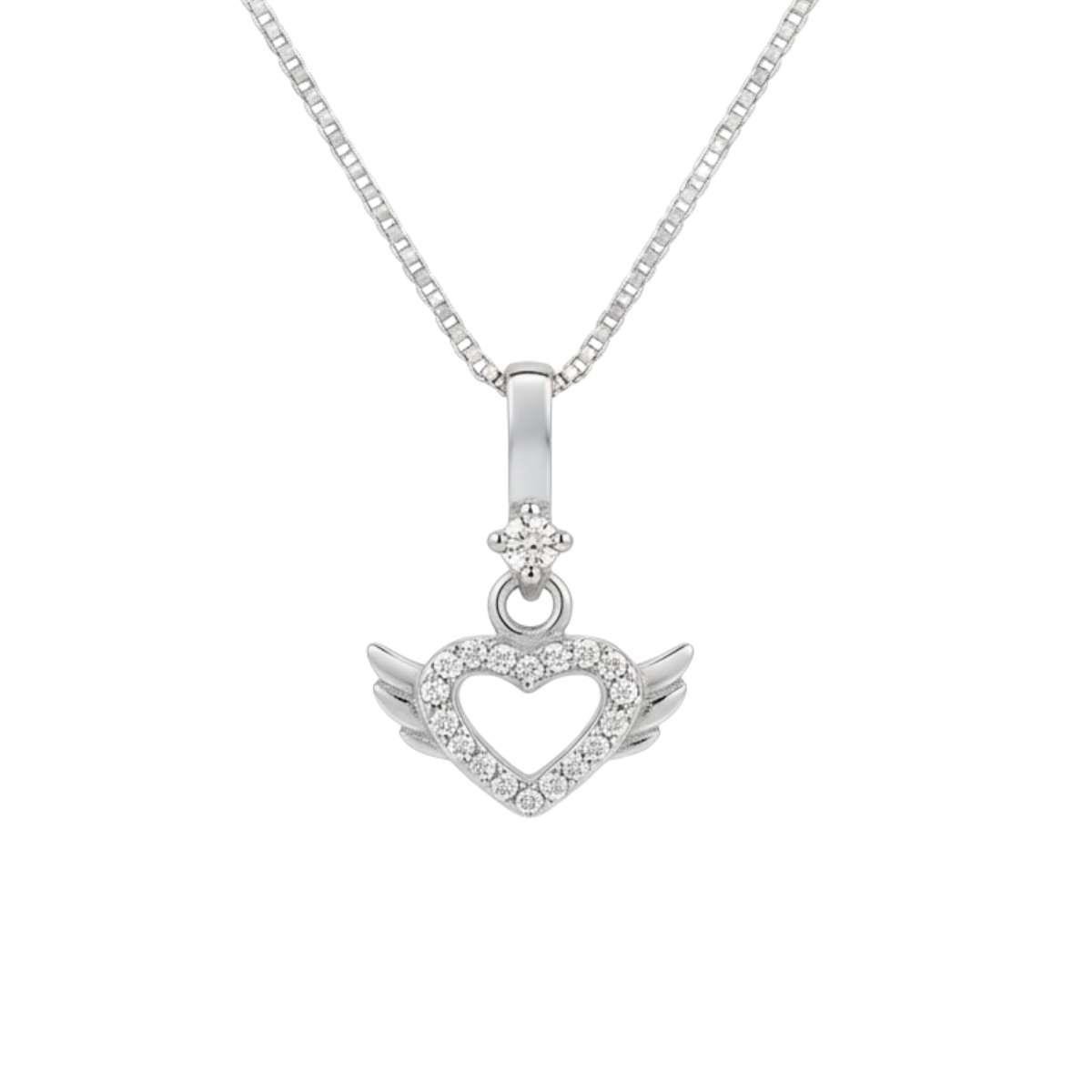 Colar Coração com Asas e Zircônias Prata 925Material: Prata 925