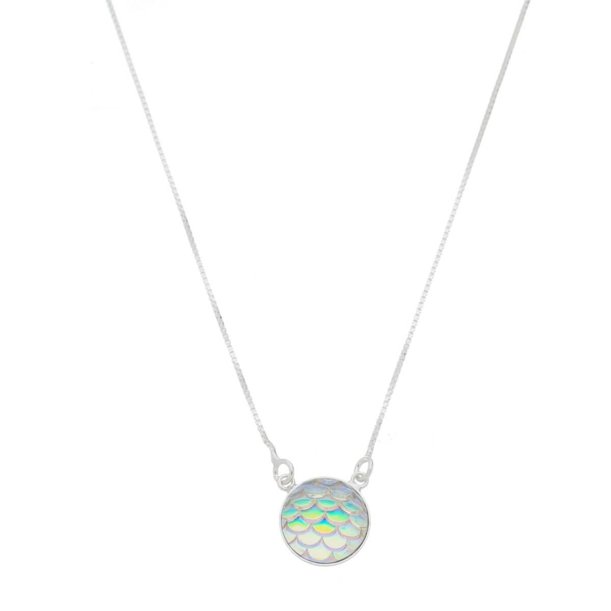 Colar de Prata 925 Escama de Sereia Boreal Material: Prata 925 Tipo de Pedra: Madrepérola Garantia: Eterna no Metal (Prata 925) e 3 meses para Defeitos de Fabricação. Medidas aproximadas: Altura: 1,1 cm Largura: 1,1 cm Comprimento: 40 cm Peso: 1,72 g. REF: CES-030