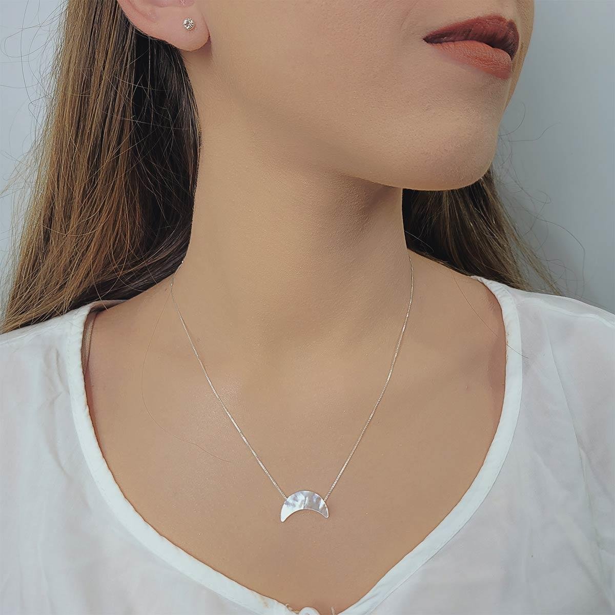 O colar de prata 925 Lua em madrepérola, uma peça sofisticada e elegante que certamente irá encantar os amantes de joias e semi joias.