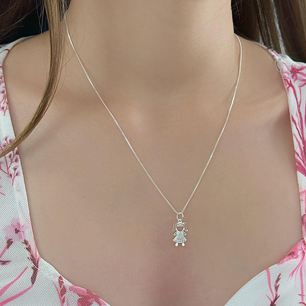Colar de Prata Com Pingente De MenininhaMaterial: Prata 925