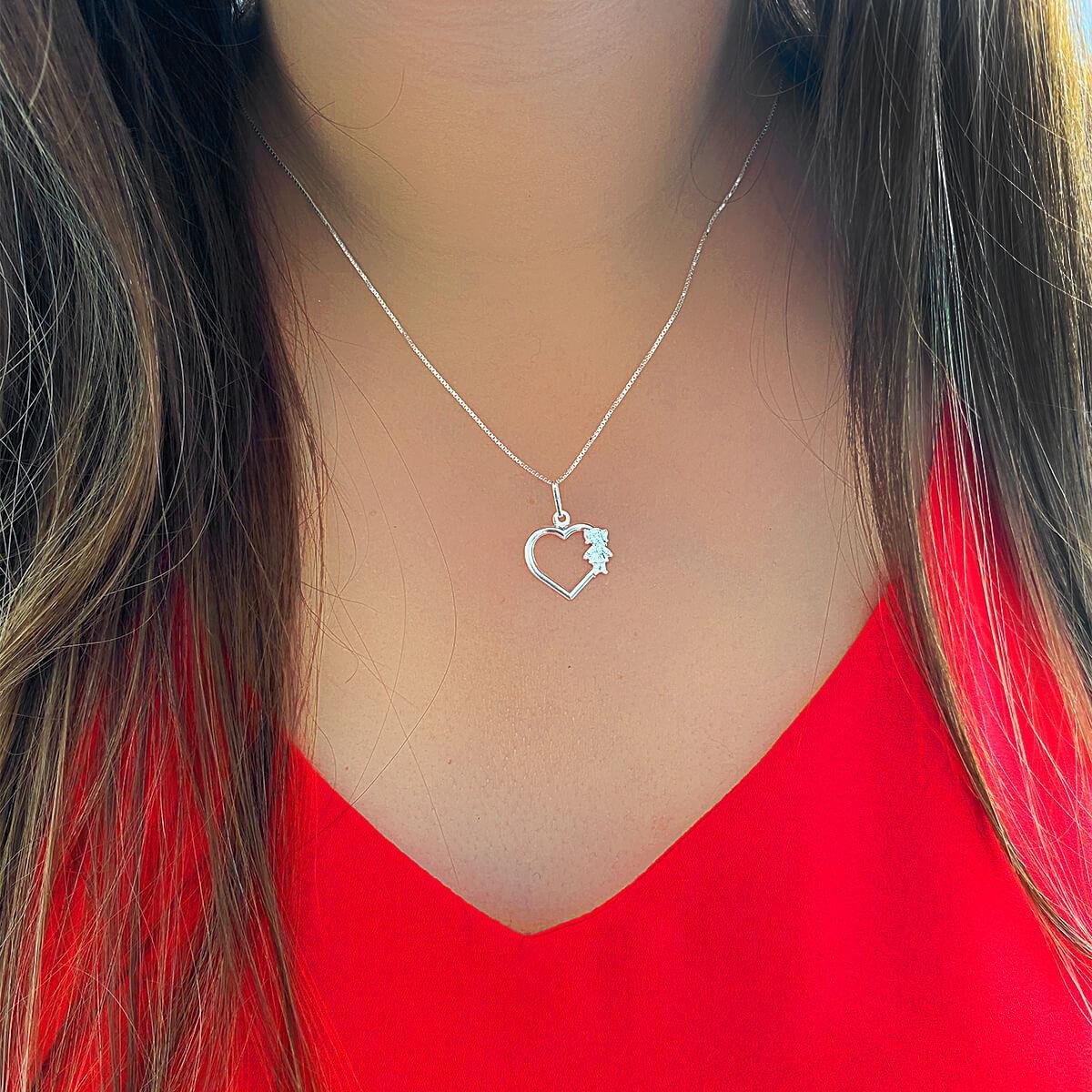 Colar De Prata Coração Menina com corrente Veneziana Material: Prata 925 Tamanho: Médio Garantia: Eterna no Metal (Prata 925) e 3 meses para Defeitos de Fabricação Acabamento: Super brilho Medidas aproximadas: Comprimento: 45cm Pingente: 1,7cm Peso: 2,53 g REF: COP-2018O colar de prata 925 com pingente em formato de coração e detalhe de menina, uma peça delicada e elegante que irá acrescentar um toque especial ao seu visual. Feito com materiais de alta qualidade, este colar é perfeito para quem busca sofisticação e estilo. Seja para uso no dia a dia ou em ocasiões especiais, este colar é uma escolha versátil e atemporal. Adquira já o seu e adicione um toque de brilho e elegância ao seu look.