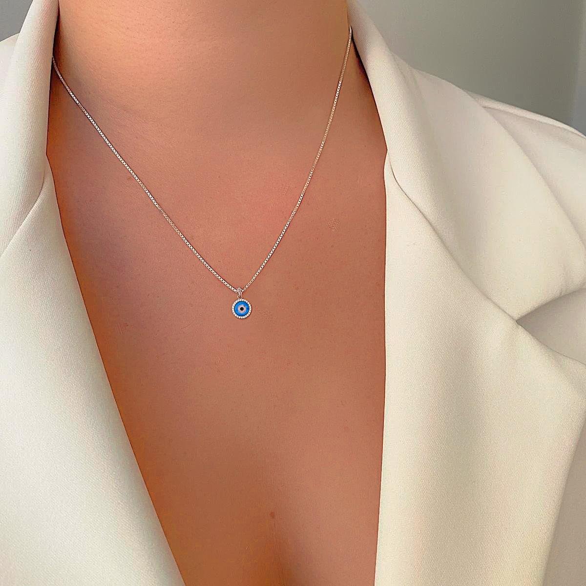O colar em prata com olho grego cravejado em microzircônia, uma peça sofisticada e elegante que certamente irá encantar os amantes de joias e semi joias.