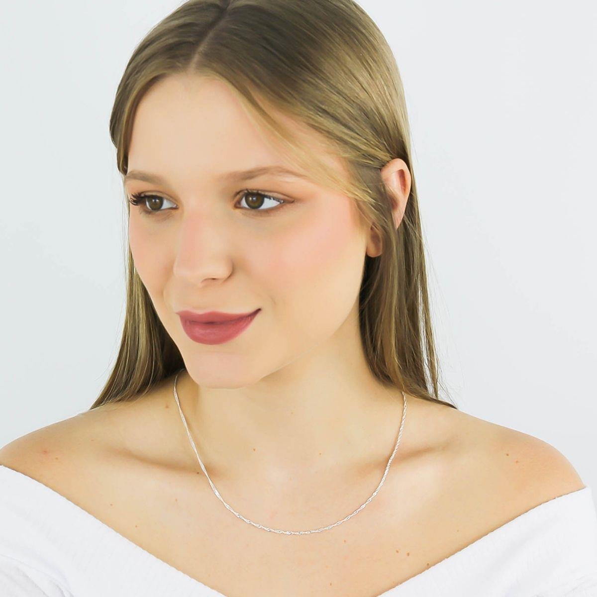 Corrente Singapura 45cm Banhado a PrataCorrente Cartie Diamantada 45cm Banhada a Ouro