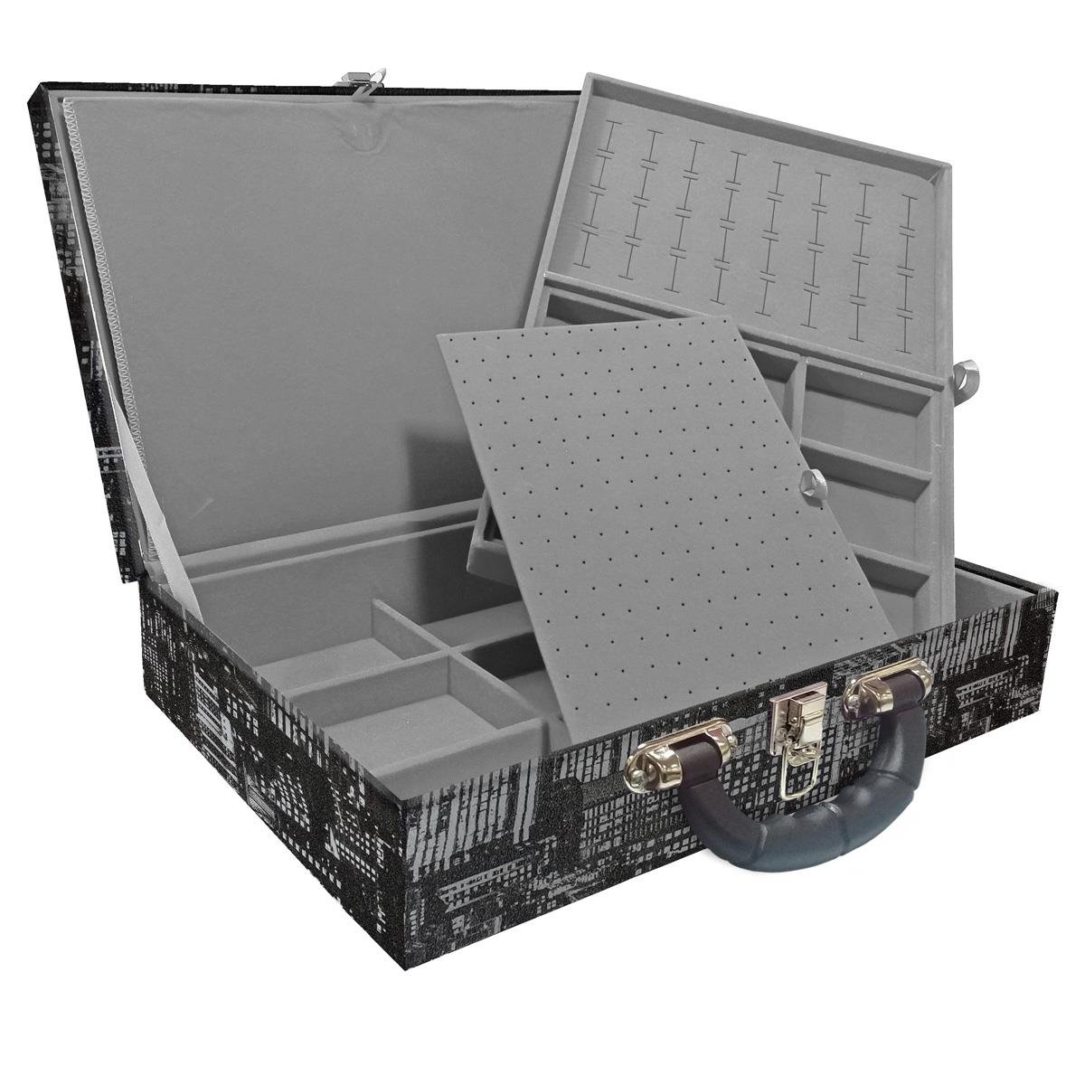 - Estojo Maleta Porta Jóias Duplo Grande Dark City Com Alça Preta e Imã