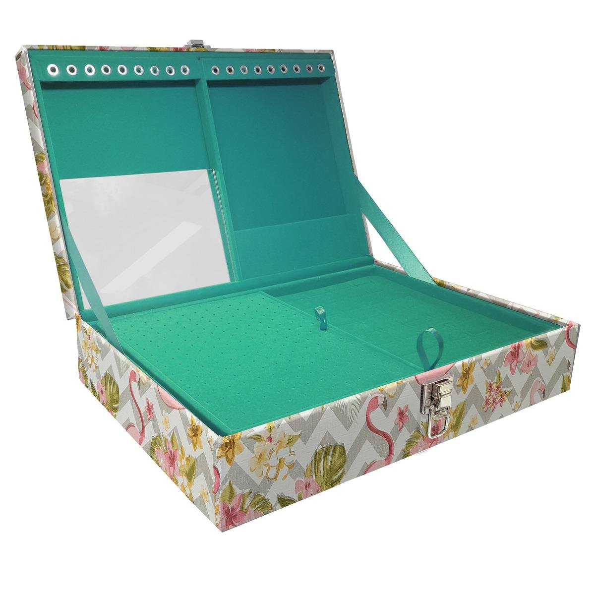 Maleta estojo dupla grande organizadora de jóias, confeccionada em material MDF (não em papelão) com revestimento externo em couro sintético e interno com tecido aveludado de 1ª linha, fazendo seu produto ter maior durabilidade valorizando e protegendo:
