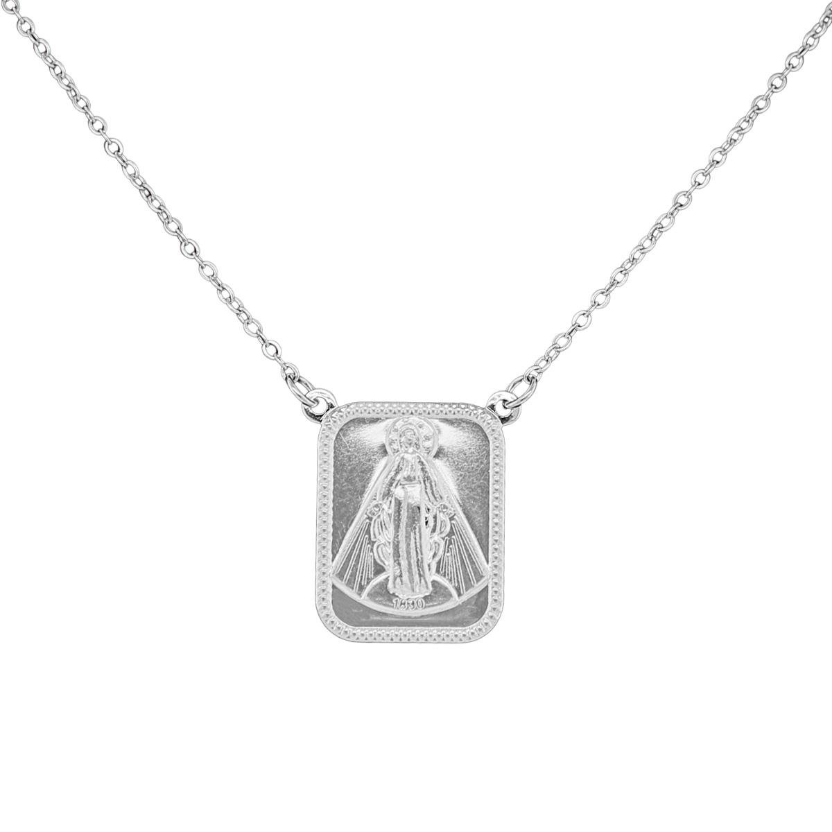 Gargantilha Cadeado com Pingente de Nossa Senhora Aparecida Banhado a Prata Material: Latão Banho: Prata 1000. Fecho: Boia Medidas Aproximadas: Gargantilha: - Comprimento: 45cm - Espessura: 1mm Pingente: - Comprimento: 17mm - Altura: 22mm - Espessura: 1mm REF.: HGAP-2859/45A nossa belíssima gargantilha com cadeadinho e plaquinha de Nossa Senhora, uma peça elegante e cheia de significado. Feita com materiais de alta qualidade, esta joia é perfeita para quem busca um acessório sofisticado e com um toque de espiritualidade.A delicada corrente e o pingente em formato de plaquinha com a imagem de Nossa Senhora conferem um charme especial a esta peça, que pode ser usada em diversas ocasiões, do dia a dia a eventos mais formais. Além disso, a combinação do dourado com o detalhe em prata traz um contraste elegante e atemporal.Seja para presentear alguém especial ou para adicionar um toque de fé e estilo ao seu próprio visual, esta gargantilha é uma escolha certeira. Adquira a sua hoje mesmo e desfrute da beleza e da qualidade que só as nossas joias e semi joias podem oferecer.:
