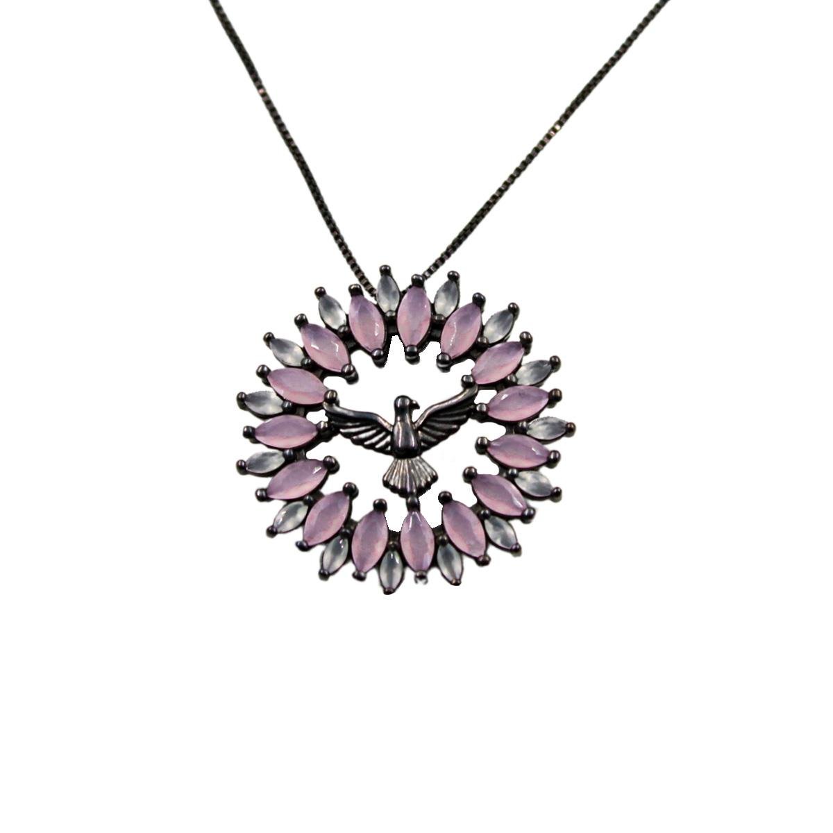 Gargantilha veneziana banhada em Ródio Negro com pingente mandala de zircônia com Espírito Santo. Medidas aproximadas da gargantilha: - comprimento: 45cm - espessura: 1mm Do pingente: - diâmetro: 3cm - altura: 3mm Peso aproximado: 9g REF.: GBG-30047:
