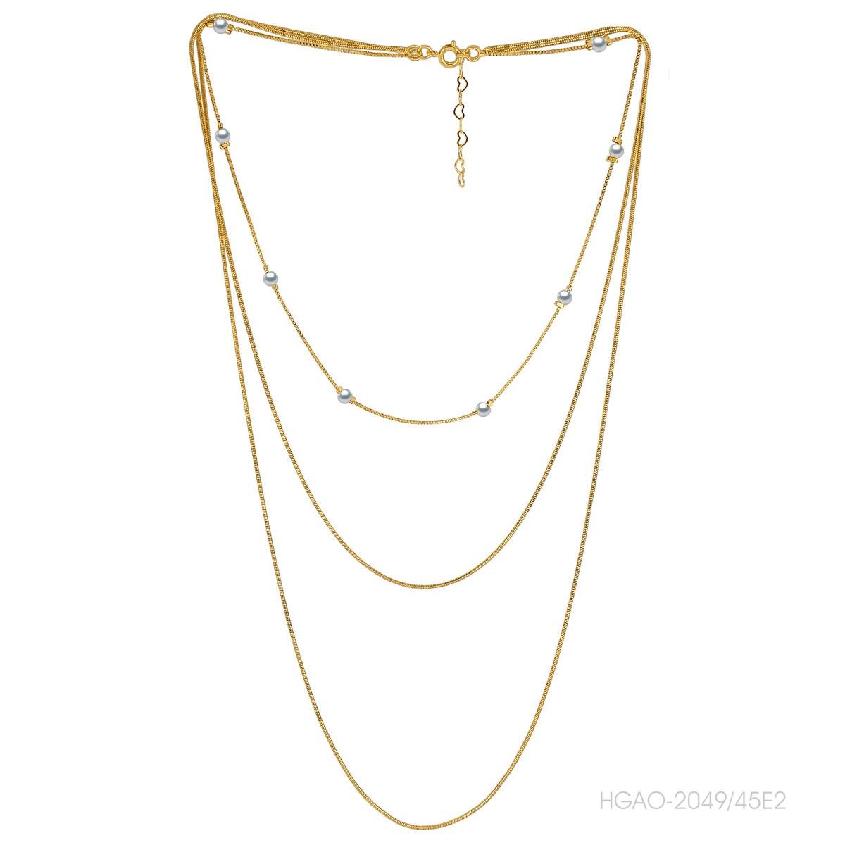 Gargantilha tripla corrente rabo de rato 45cm com pérolas folheado a ouro.: