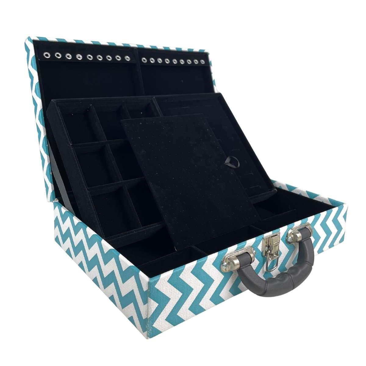 Maleta estojo dupla grande organizadora de jóias, confeccionada em material MDF (não em papelão) com revestimento externo em couro sintético e interno com tecido aveludado de 1ª linha, fazendo seu produto ter maior durabilidade valorizando e protegendo suas peças com estilo.