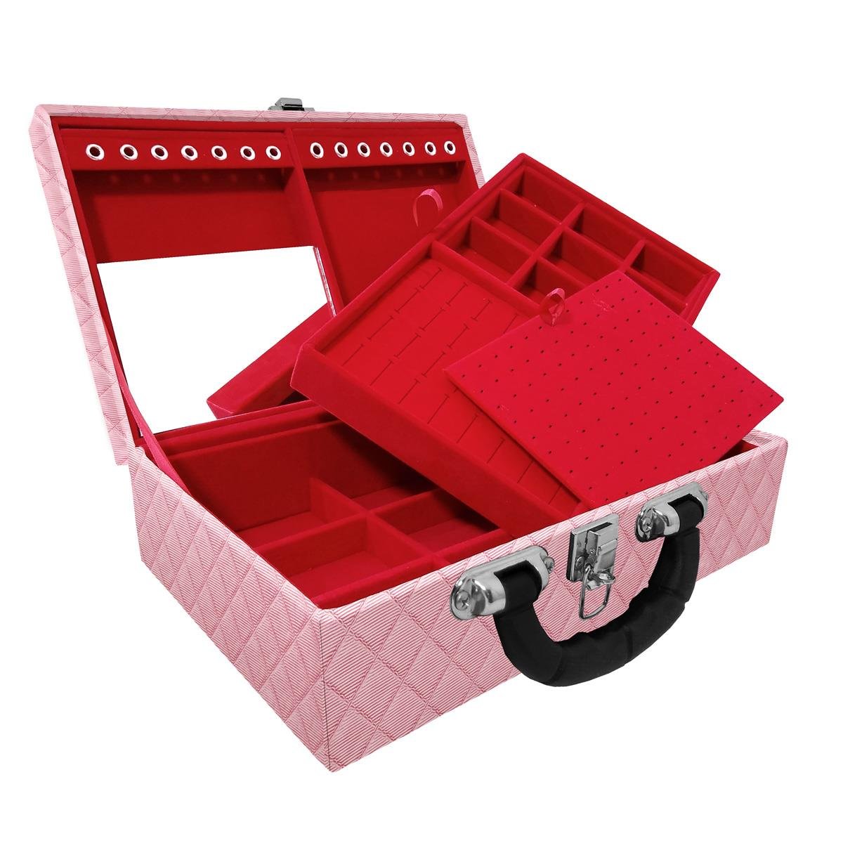 Maleta estojo dupla média organizadora de jóias, confeccionada em material MDF (não em papelão) com revestimento externo em couro sintético e interno com tecido aveludado de 1ª linha, fazendo seu produto ter maior durabilidade valorizando e protegendo suas peças com estilo.