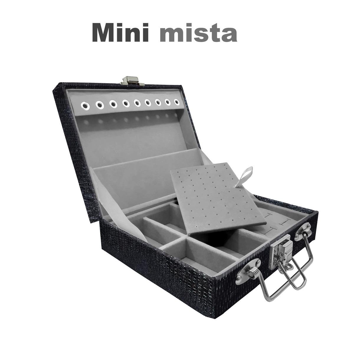 ATENÇÃO: PRODUTO SOB ENCOMENDA - 20 DIAS ÚTEIS PARA FABRICAÇÃO Maleta Mini Mista Jacaré - SOB ENCOMENDA Maleta estojo mini organizadora de jóias, confeccionada em material MDF (não em papelão) com revestimento externo em couro sintético e interno com tecido aveludado de 1ª linha, fazendo seu produto ter maior durabilidade valorizando e protegendo suas peças com estilo. Contém: - Aproximadamente 9 ilhós para correntes, pingentes ou pulseiras; - Placa organizadora para aproximadamente 30 pares de brincos (medidas aproximadas 13cm x 8cm ); - Suporte aproximadamente para 12 anéis (podendo variar de acordo com o tamanho da jóia);. - 4 quadriculados (medidas aproximadas 6cm x 3,5cm ) para demais jóias; - Fecho cromado; - Alça fina cromada. Medidas Aproximadas: Altura: 6cm Largura: 15cm Comprimento: 18cm Peso: 660g: