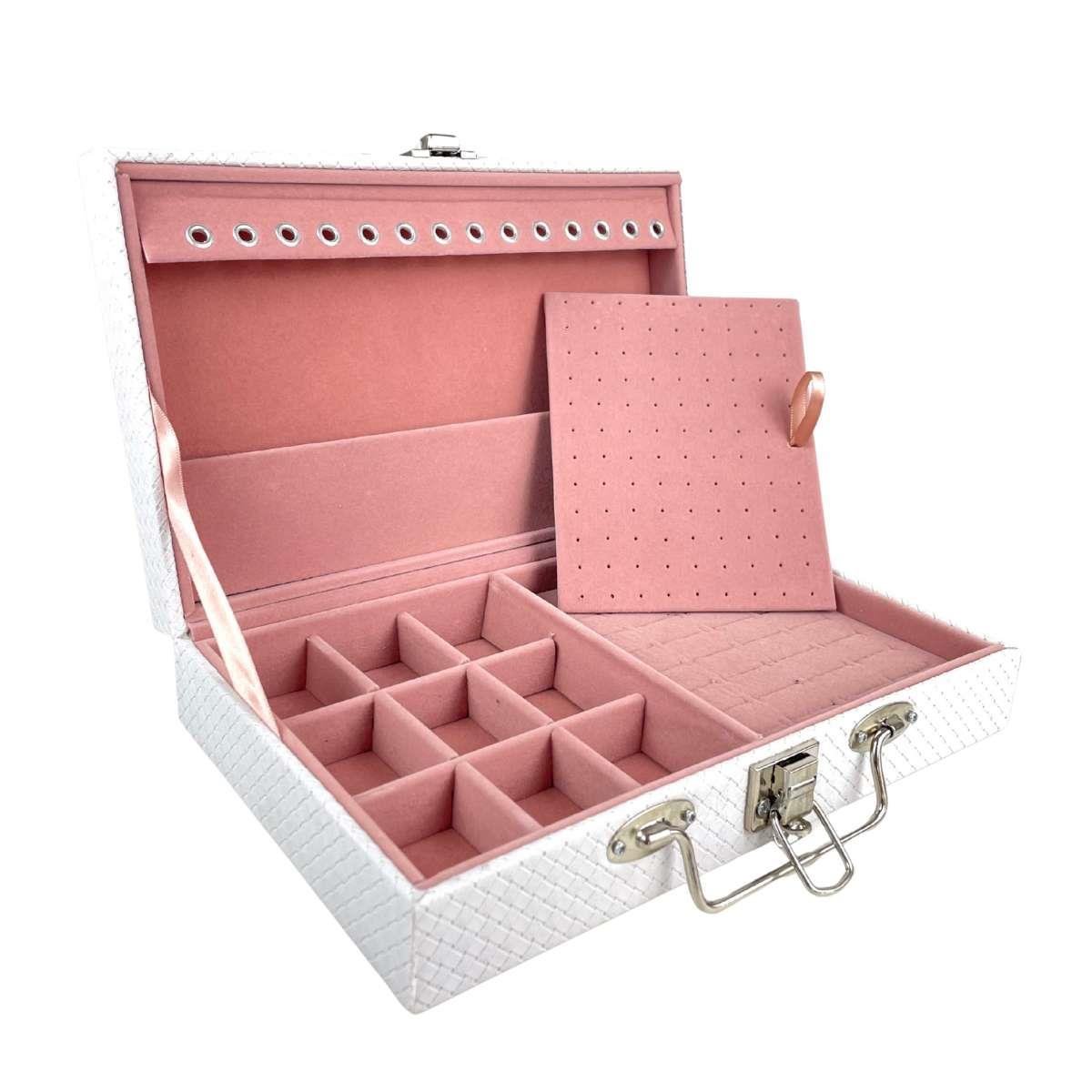 Maleta Porta-Joias Simples Média Ladrilhado Branco