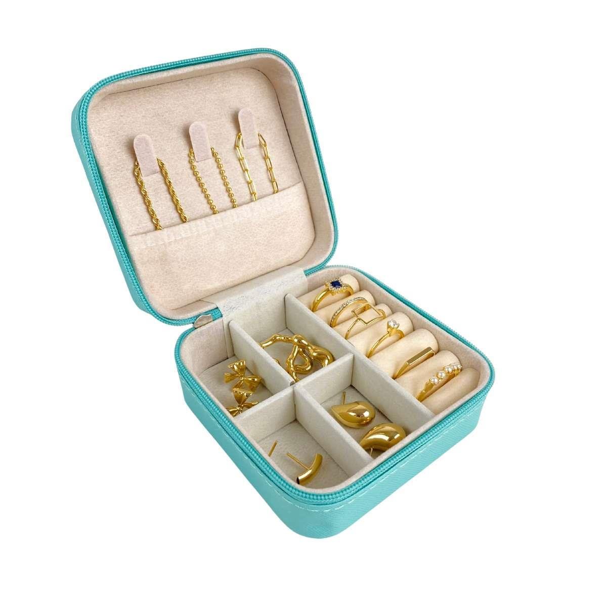 Mini Estojo Porta Jóias Para Viagem Prada Tiffany com ZiperO mini porta jóias é ótimo para utilizar em viagens, presentar como brinde ou até mesmo para uso próprio!