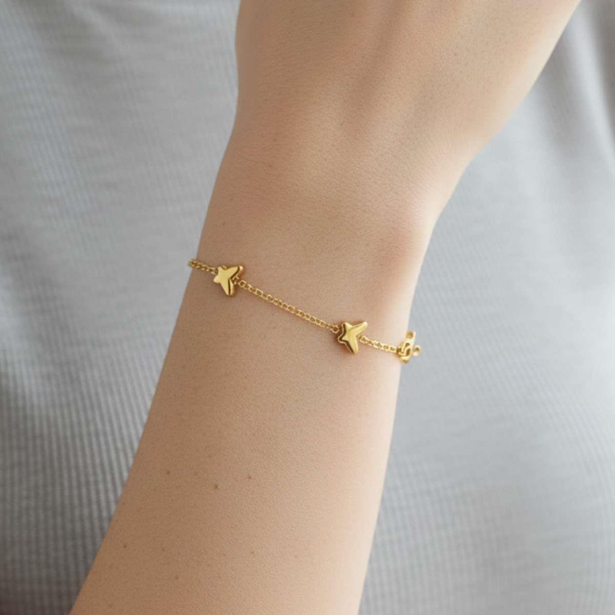 Pulseira de Borboletas 18cm Banhado a OuroMaterial: Latão