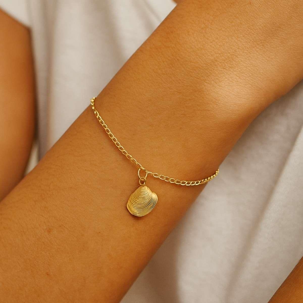 Pulseira de Concha 18cm Banhado a OuroMaterial: Latão