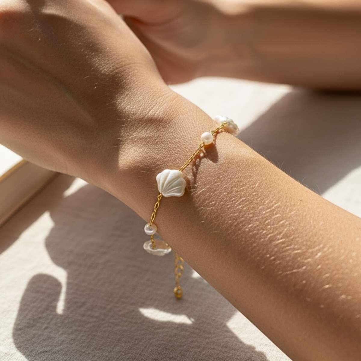 Pulseira de Concha 18cm Banhado a OuroMaterial: Latão