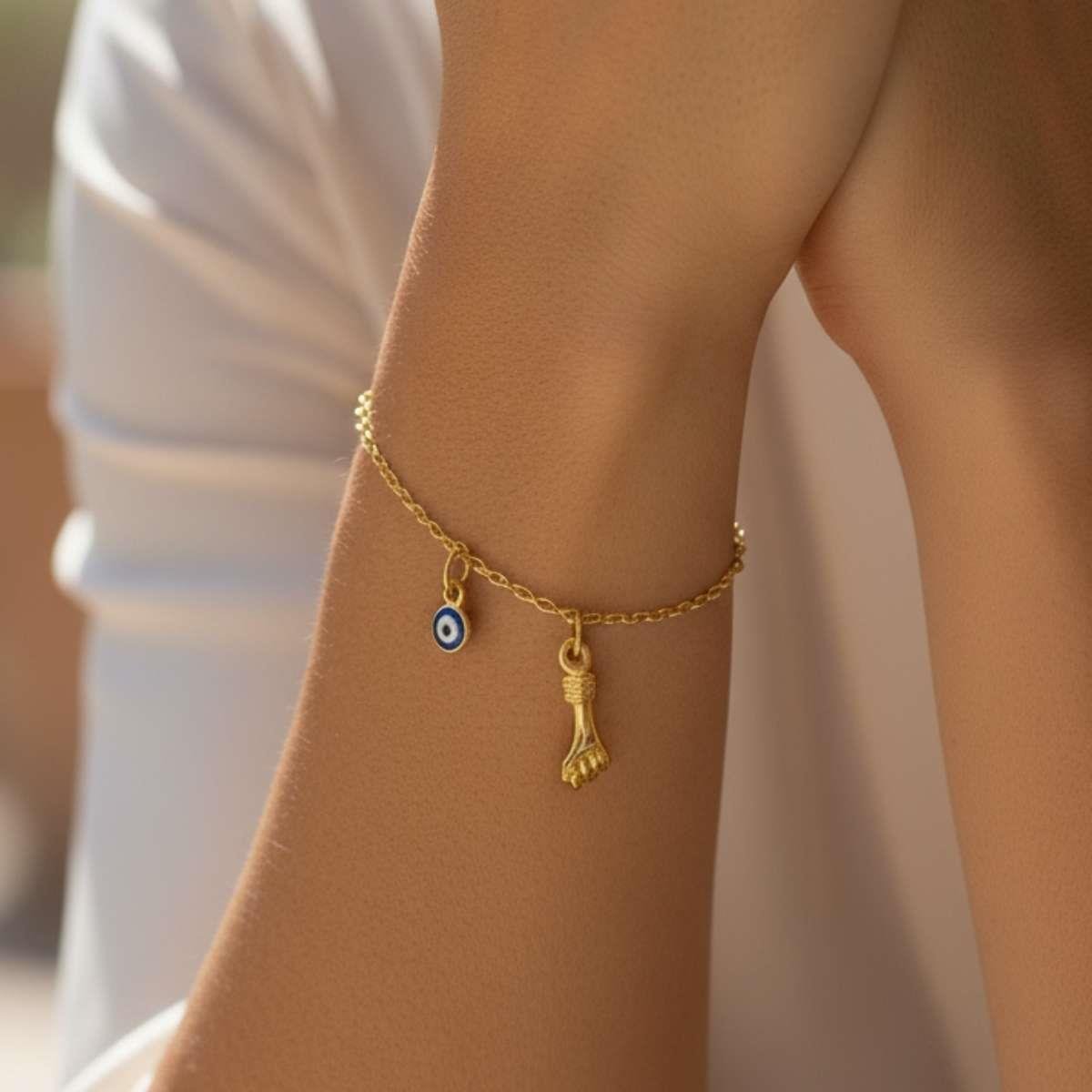 Pulseira de Olho Grego e Figa 18cm Banhado a OuroMaterial: Latão