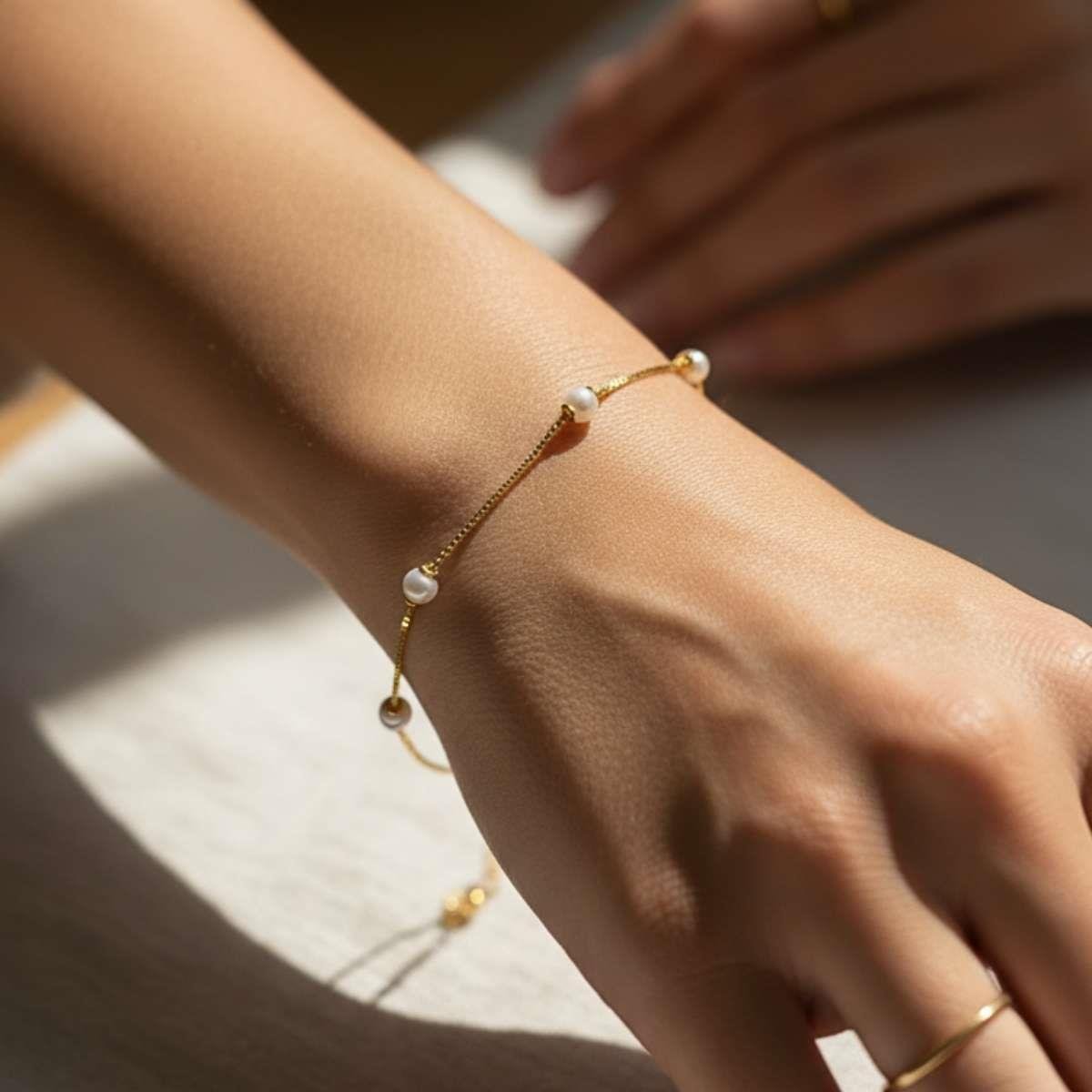 Pulseira de Pérolas 18cm Banhado a OuroMaterial: Latão