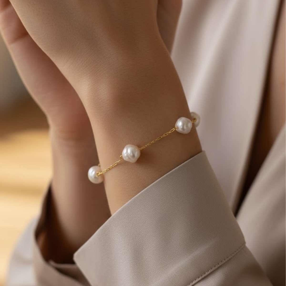 Pulseira de Pérolas 18cm Banhado a OuroMaterial: Latão