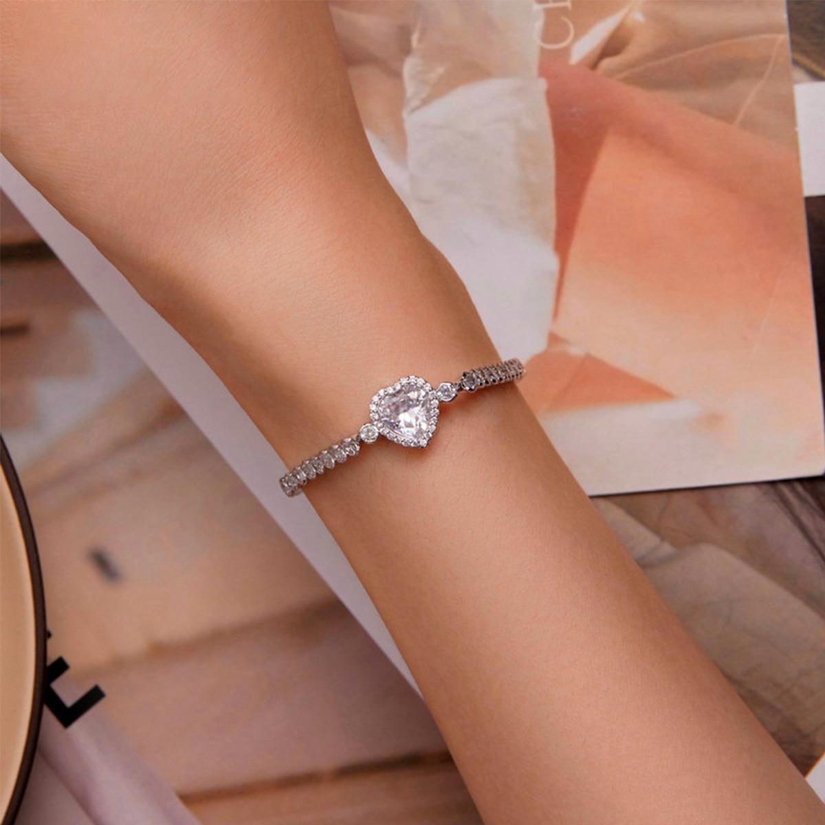 A pulseira de prata 925 com zircônias cristais e coração, uma peça elegante e sofisticada que irá adicionar um toque de brilho e glamour ao seu visual. Feita com materiais de alta qualidade, esta pulseira é perfeita para quem busca um acessório versátil e atemporal.