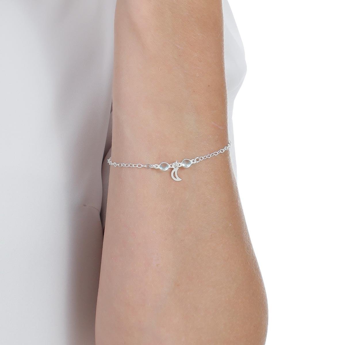 Fabricada em prata de alta qualidade, essa pulseira possui um acabamento impecável, garantindo durabilidade e resistência. O ponto de luz e a lua pendente adicionam um toque de charme e feminilidade, tornando-a ainda mais especial.