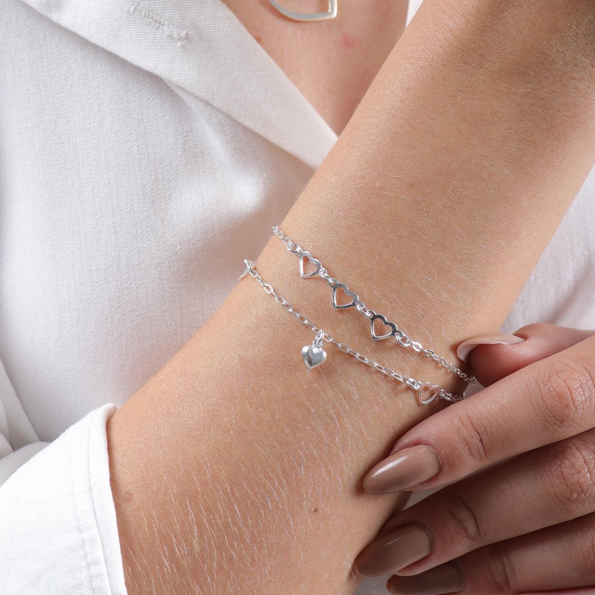 A pulseira de prata com três corações vazados, uma peça sofisticada e elegante que certamente irá encantar os amantes de joias e semi joias.