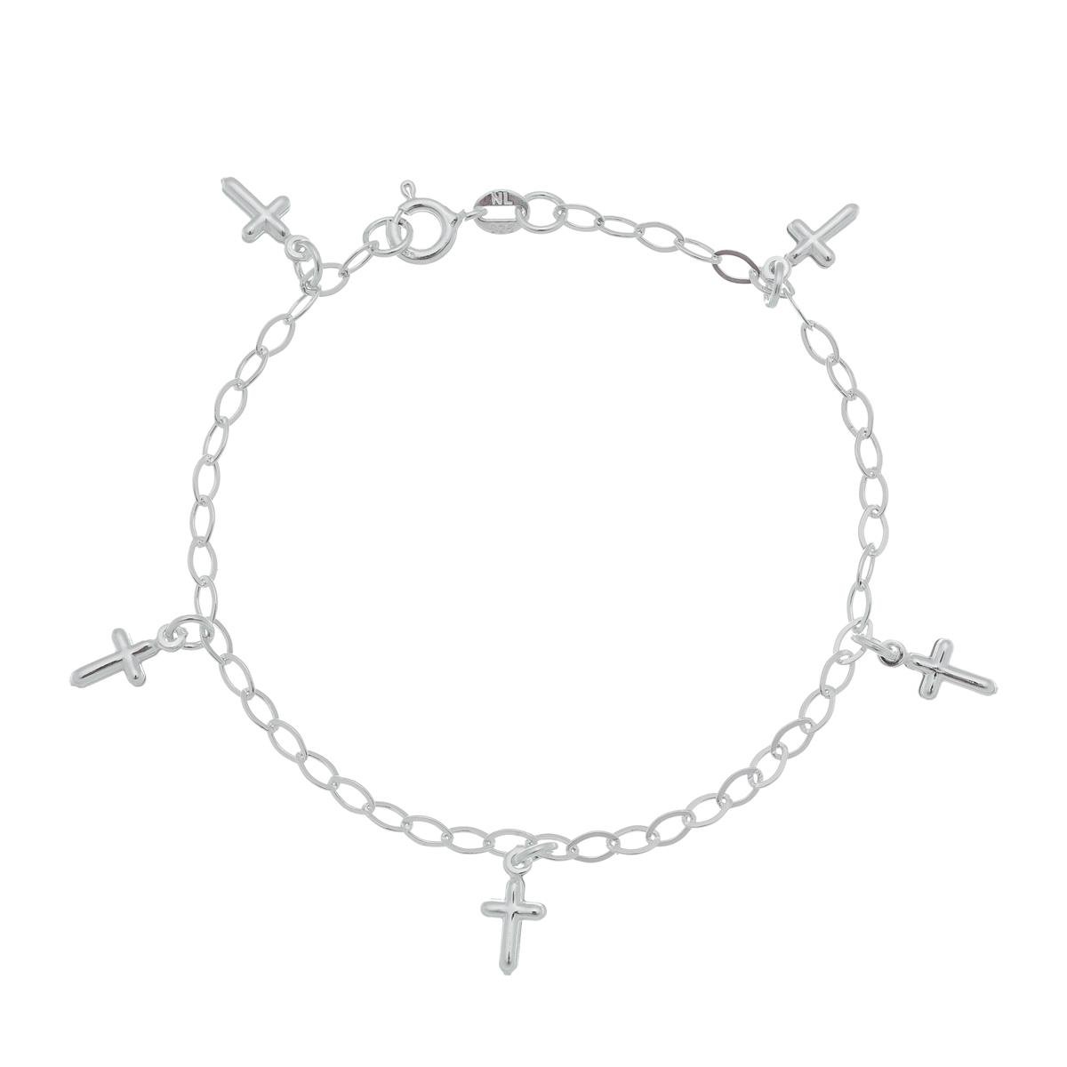 Pulseira de prata elo losango 1x1 com pingentes cruz.