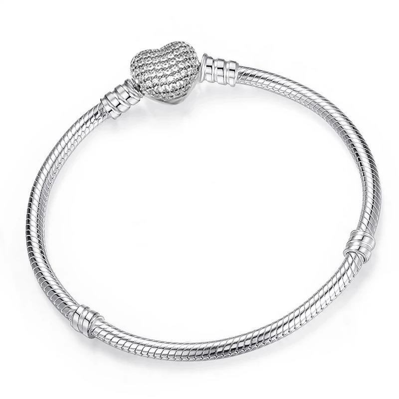 Pulseira De Prata Para Berloque Flexível Coração Cravejada Material: Prata 925 Tipo de Pedra: Zircônia Garantia: Eterna no Metal (Prata 925) e 3 meses para Defeitos de Fabricação. Dica importante: Faça a medição do seu pulso com um barbante, com uma régua marque a medida e acrescente +1cm ou +2 cm Por exemplo: A medida de seu pulso deu 18 cm, some +2 cm = 20 cm (esse é o tamanho da pulseira que precisa comprar, o espaço que sobra é para poder encher de berloques) Medidas aproximadas: Peso: 11,23 g. REF: PUP-0927: