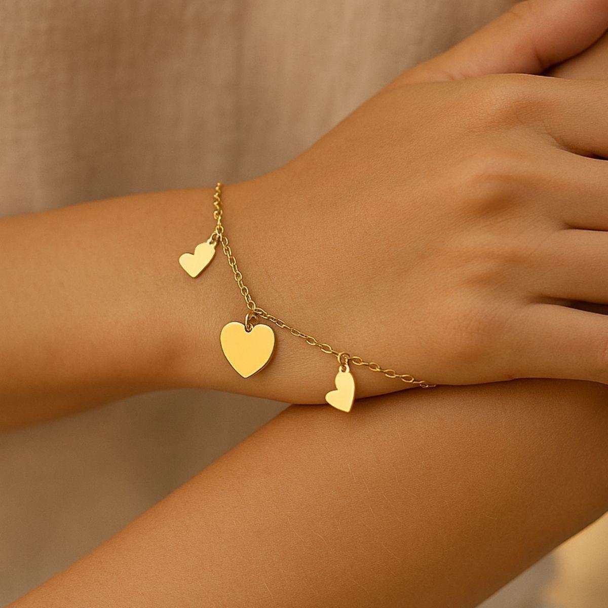 Pulseira Três Corações 18cm Banhado a OuroMaterial: Latão