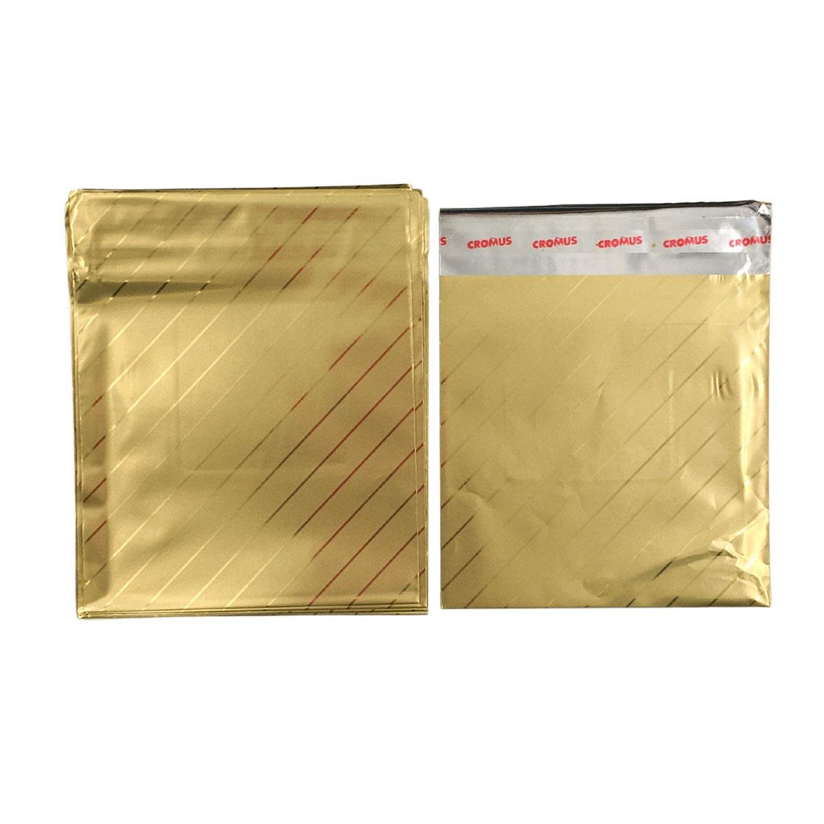 - Saquinho Adesivo Metalizado 8x8cm Pct 50 - Ouro Estampado
